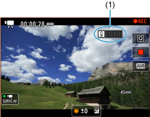 Pārmērīgas kameras iekšējās temperatūras gadījumā fotoattēlu uzņemšanas vai video ierakstīšanas laikā tiek parādīts 10 līmeņu indikators (1).