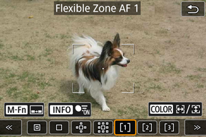Varat mainīt elastīgai zonai AF 1–3 attēloto zonas AF rāmju lielumu.