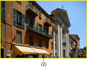 Kad attēli tiek filtrēti attēlošanai, ekrānam ir dzeltens rāmis (2).