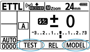 Een testflits of modelflits () kan in draadloze flitsfotografie met radiotransmissie worden geflitst vanuit Speedlites EL-1 (Ver.2) die zijn ingesteld als ontvanger.