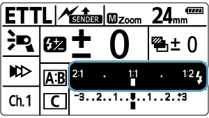 - Flitsgroepen A, B en C gaan flitsen. Als deze niet flitst, controleer dan of deze binnen het bewerkingsbereik is geplaatst.