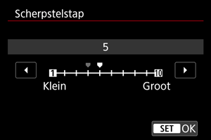 Geef op hoeveel de scherpstelling verplaatst moet worden. Deze hoeveelheid wordt automatisch aangepast volgens de diafragmawaarde op het moment van de opnamen.