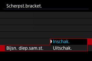 - Scherpstelbracketing is niet beschikbaar als de camera op de modus handmatige scherpstelling is ingesteld ().