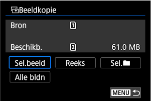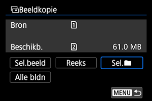 - Met [Sel.beeld] kunnen beelden in meerdere mappen niet tegelijkertijd worden gekopieerd. Selecteer beelden die u wilt kopiëren uit één map tegelijk.