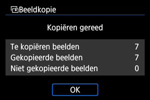 - De resultaten worden weergegeven nadat het kopiëren is voltooid. Selecteer [OK] om terug te keren naar het scherm van stap 2.