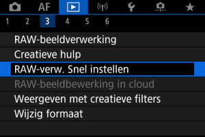U kunt het type RAW-beeldverwerking selecteren dat vanaf het scherm Snel instellen wordt uitgevoerd.
