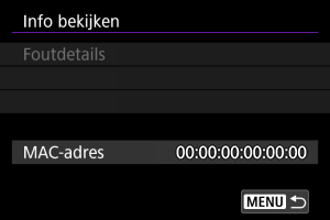 U kunt de details van foutmeldingen en het MAC-adres van de camera controleren.