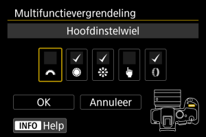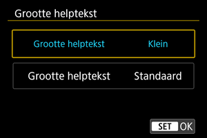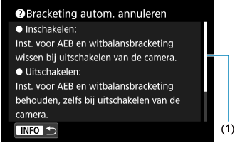 te drukken. Druk opnieuw op de knop om het Hulp-scherm te sluiten. Draai aan het instelwiel