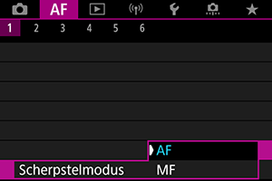 . De instelling op de lens krijgt voorrang en de scherpstelmodusknop van de camera en de instelling [