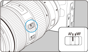 Stel de scherpstelmodusknop op de lens in op