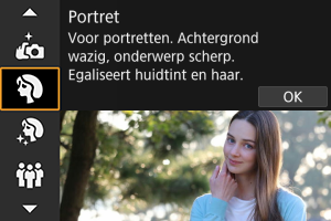 Gebruik de modus [] (Portret) om de achtergrond onscherp te maken en de persoon die u opneemt te laten opvallen. Ook worden de huidtinten en het haar zachter gemaakt.