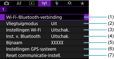 - De camera kan niet via Wi-Fi worden verbonden als er zich geen kaart in de camera bevindt (behalve voor [