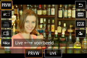 - Als u [PRVW] (Voorbeeld) selecteert, kunt u de streaming testen zonder de beelden openbaar weer te geven. Dit is nuttig om beelden te controleren voordat u ze streamt.