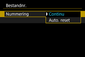 Aan de vastgelegde beelden die in een map zijn opgeslagen, wordt een bestandsnummer toegekend van 0001 tot 9999. U kunt de nummering van de beeldbestanden wijzigen.