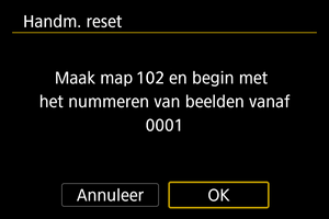 • Als u de bestandsnummering opnieuw wilt instellen, selecteert u [Handm. reset] ().