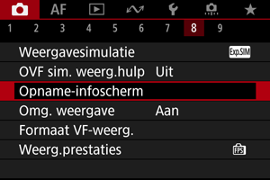 U kunt de details en schermen met informatie aanpassen die tijdens het opnemen wordt weergegeven op het scherm of in de zoeker.