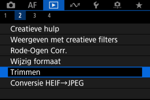 U kunt een opgenomen JPEG- of HEIF-beeld bijsnijden en afzonderlijk opslaan. RAW-beelden en beelden van 4K-video's die zijn opgeslagen als foto's kunt u niet bijsnijden.