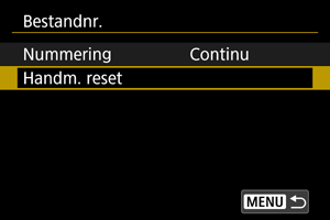 Voor het terugzetten van de bestandsnummering op 0001 of het beginnen met het bestandsnummer 0001 in een nieuwe map