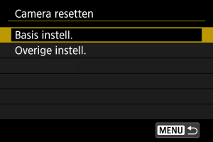 Herstelt standaardinstellingen voor camera-opnamefuncties en menu-instellingen.