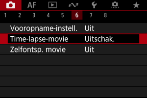 - Om het opnemen van time-lapse-video's te annuleren stelt u [Time-lapse] in op [Uitschak.].