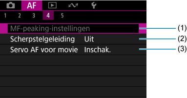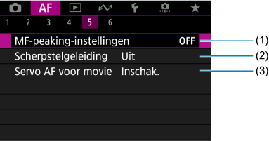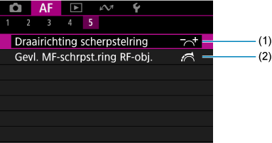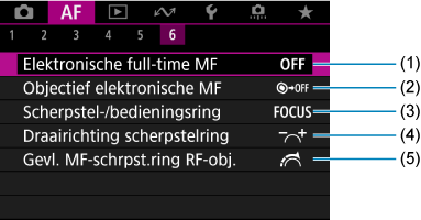 - Wanneer lenzen zonder scherpstelmodusknop worden gebruiken, wordt [Scherpstelmodus] weergegeven op het tabblad [