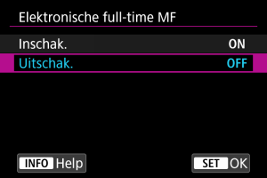 Voor lenzen die zijn uitgerust met elektronische handmatige scherpstelling, kunt u opgeven hoe handmatige scherpstelling wordt gebruikt met 1-beeld AF.