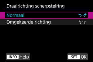 U kunt de richting waarin de scherpstelring van een RF-lens wordt gedraaid, omkeren om instellingen aan te passen.