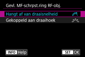 U kunt de gevoeligheid van de scherpstelring van de RF-lens instellen.