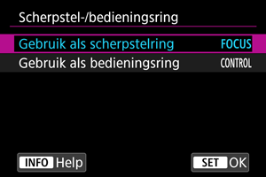 Schakelen van de functionaliteit van de lensscherpstelling/bedieningsring met het menu.
