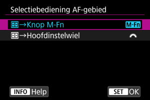 : Scherpstelmodus] wilt beperken tot [AF] wanneer [Gebruik als bedieningsring] is geselecteerd, drukt u op de knop