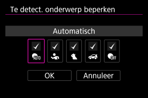 U kunt de beschikbare instellingsopties in [: Te detect. onderw.] beperken tot de opties van uw voorkeur. Selecteer een optie die u wilt uitsluiten en druk op de knop