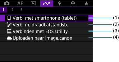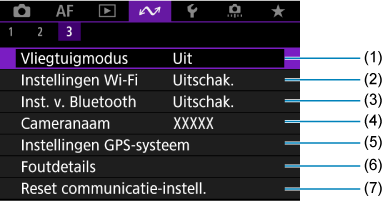 - Sommige menu-items kunnen niet worden geconfigureerd terwijl de camera via een interfacekabel is verbonden met computers of andere apparaten.