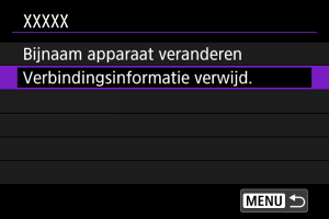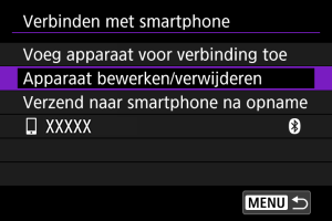 - In het menu met Bluetooth-instellingen van de smartphone wist u de camera-informatie die op de smartphone is geregistreerd.
