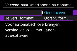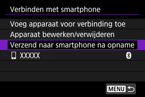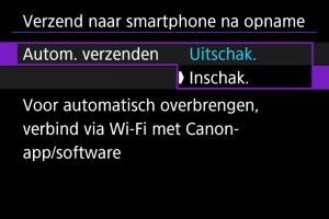 Uw opnames kunnen automatisch worden verzonden naar een smartphone. Voordat u deze stappen doorloopt, dient u ervoor te zorgen dat de camera en de smartphone met elkaar verbonden zijn via Wi-Fi.