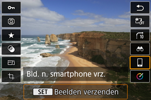- Bij smartphones die aan de camera zijn gekoppeld, staat de aanduiding [