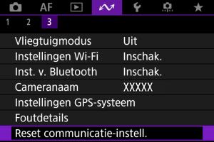 • Alle draadloze communicatie-instellingen kunnen worden gewist door de optie [Communicatie-instellingen] te selecteren voor [Overige instell.] in [Instellen: Camera resetten].