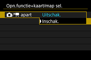 - Selecteer [Inschak.] voor automatische configuratie van de opnamemethode voor foto's en video's. Foto's worden opgenomen op de kaart [
