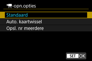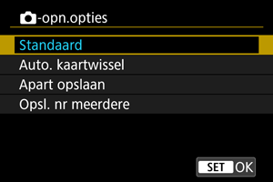 Zelfde als [Standaard], maar bovendien schakelt de camera over naar de andere kaart wanneer een kaart vol raakt. Op dit moment wordt een nieuwe map aangemaakt.