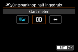 Voor elke meetmethode kunt u instellen of u de belichting wilt vergrendelen (AE-vergrendeling) zodra op onderwerpen is scherpgesteld met 1-beeld AF. De belichting wordt vergrendeld terwijl u de ontspanknop half ingedrukt houdt. Selecteer meetmethoden voor AE-vergrendeling en voeg een vinkje toe []. Selecteer [OK] om de instelling vast te leggen.