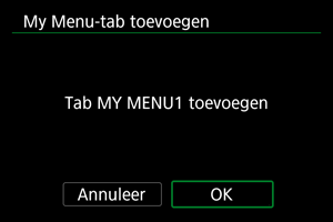 U kunt het huidige My Menu-tabblad verwijderen. Selecteer [Verwijder tab] om het tabblad [MY MENU*] te verwijderen.