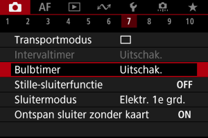 Houd er rekening mee dat de bulbtimer alleen kan worden ingesteld en geactiveerd in de modus B (bulb-belichting).