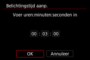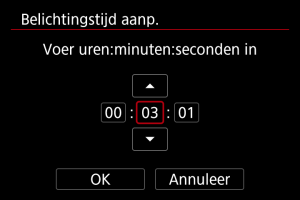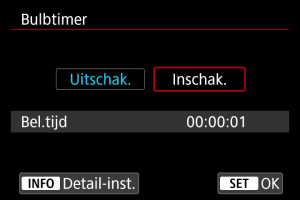 U kunt de belichtingstijd voor bulb-belichting vooraf instellen. Dankzij deze functie hoeft u de ontspanknop niet ingedrukt te houden bij het maken van opnamen met bulb-belichting om cameratrilling te voorkomen.