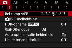 - U kunt AEB instellen in combinatie met de belichtingscompensatie.