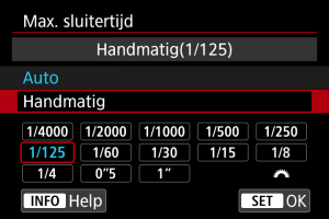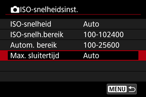 U kunt de langste sluitertijd voor ISO auto instellen om te voorkomen dat sluitertijden automatisch te lang worden ingesteld.