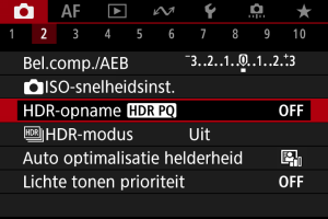 Met HDR PQ-instellingen kan de camera HDR-beelden produceren volgens de PQ-specificatie gedefinieerd in ITU-R BT.2100 en SMPTE ST.2084. (Daadwerkelijke weergave is afhankelijk van de monitorprestaties.)