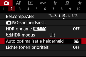 - Indien een andere optie dan [Uitschak.] is ingesteld en u gebruikmaakt van belichtingscorrectie of flitsbelichtingscorrectie de opnamen donkerder te maken, kunnen de beelden nog steeds licht uitvallen. Indien u een donkere belichting wilt, stelt u deze optie in op [Uitschak.].