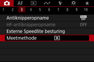 Er zijn vier meetmethoden beschikbaar om de helderheid van het onderwerp te meten. Meestal wordt meervlaksmeting aanbevolen. Meervlaksmeting wordt automatisch ingesteld in de basismodi (behalve in de modus :
