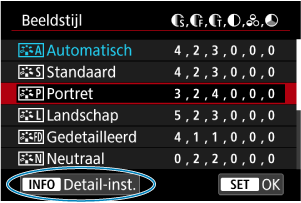om de aangepaste instelling op te slaan en terug te keren naar het selectiescherm voor Beeldstijl.