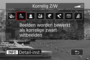 - Met [Korrelig Z/W] zal het korrelige voorbeeld enigszins afwijken van het uiterlijk van uw opnamen.
