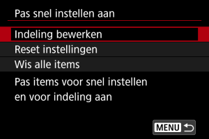 De items en lay-out van Snel instellen zijn aanpasbaar.